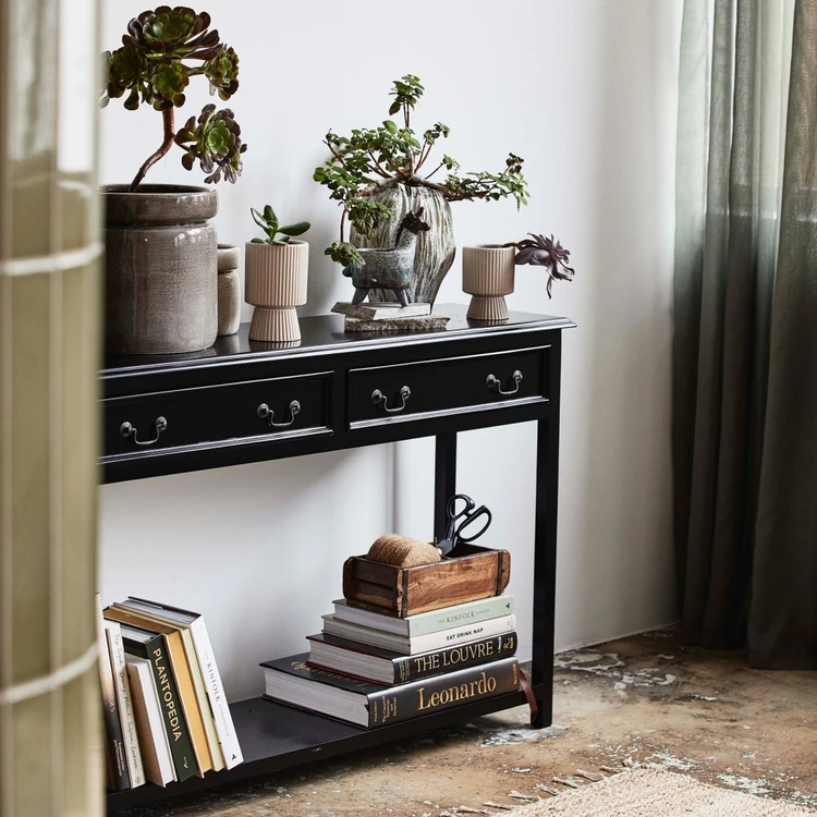Past their aesthetic enchantment, console tables additionally provide sensible storage options, serving to you keep organised and maintain your house freed from muddle. Take into account our Nordal Moss Black Mango Wooden Console Desk — a timeless piece that includes two drawers for on a regular basis necessities and a shelf beneath excellent for espresso desk books or storage packing containers.